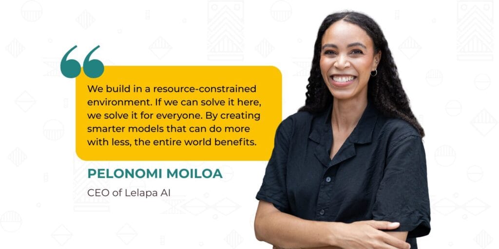“We design for efficiency from the start. Others build large systems first and then shrink them. We make efficient decisions at the foundational level because we must make things work under constraint,” notes Pelonomi Moiloa, CEO of Lelapa AI. This approach produces models that are affordable, high performing, and scalable across regions.